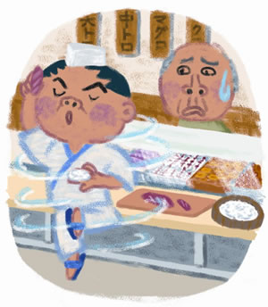 主「それがそうでもないんです。最近の若いもんは、寿司いうたら回転寿司しか知らんそうで、昔ながらの店はもうあきまへんわ」